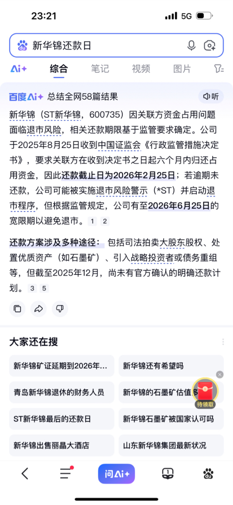 $ST新华锦(SH600735)$ 2月9号开庭!25号必须还款!这下危险了!