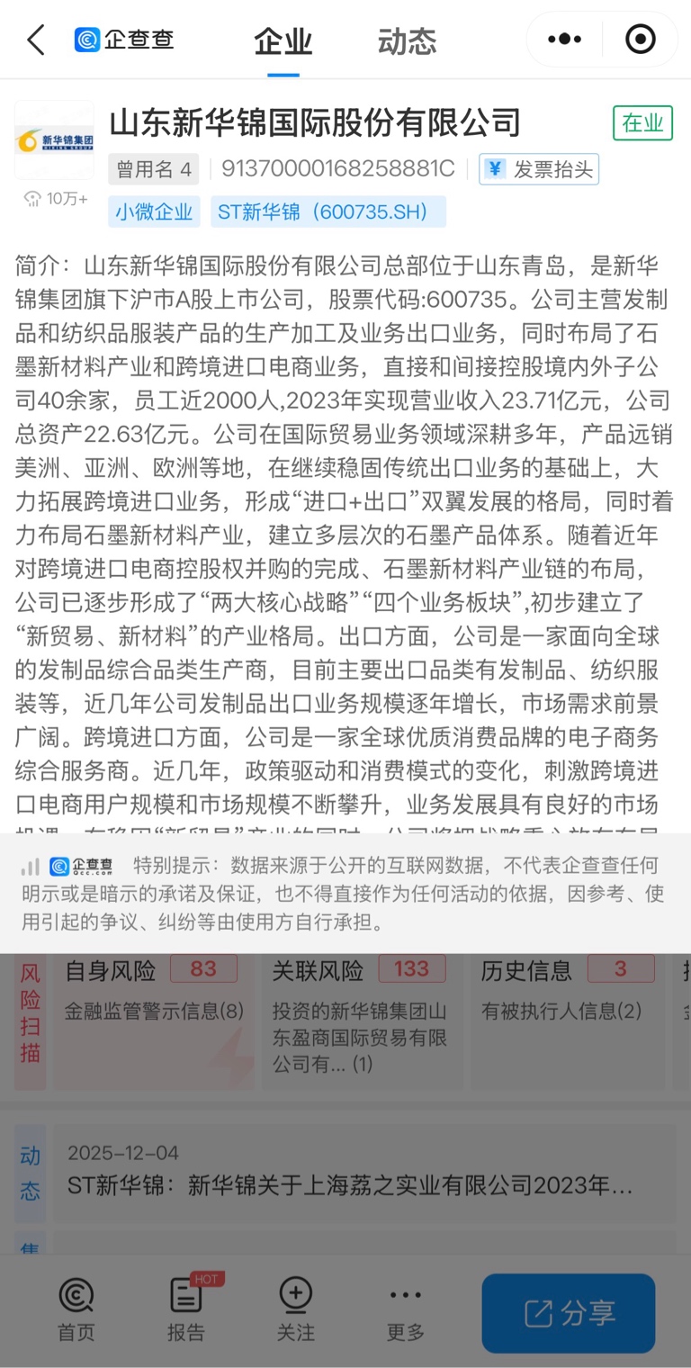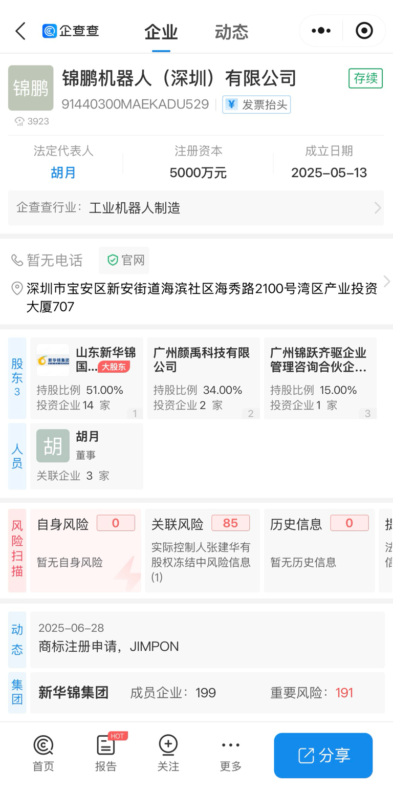 新华锦是个大集团,锦鹏是不是上市公司名下的呢?请看这张截图
