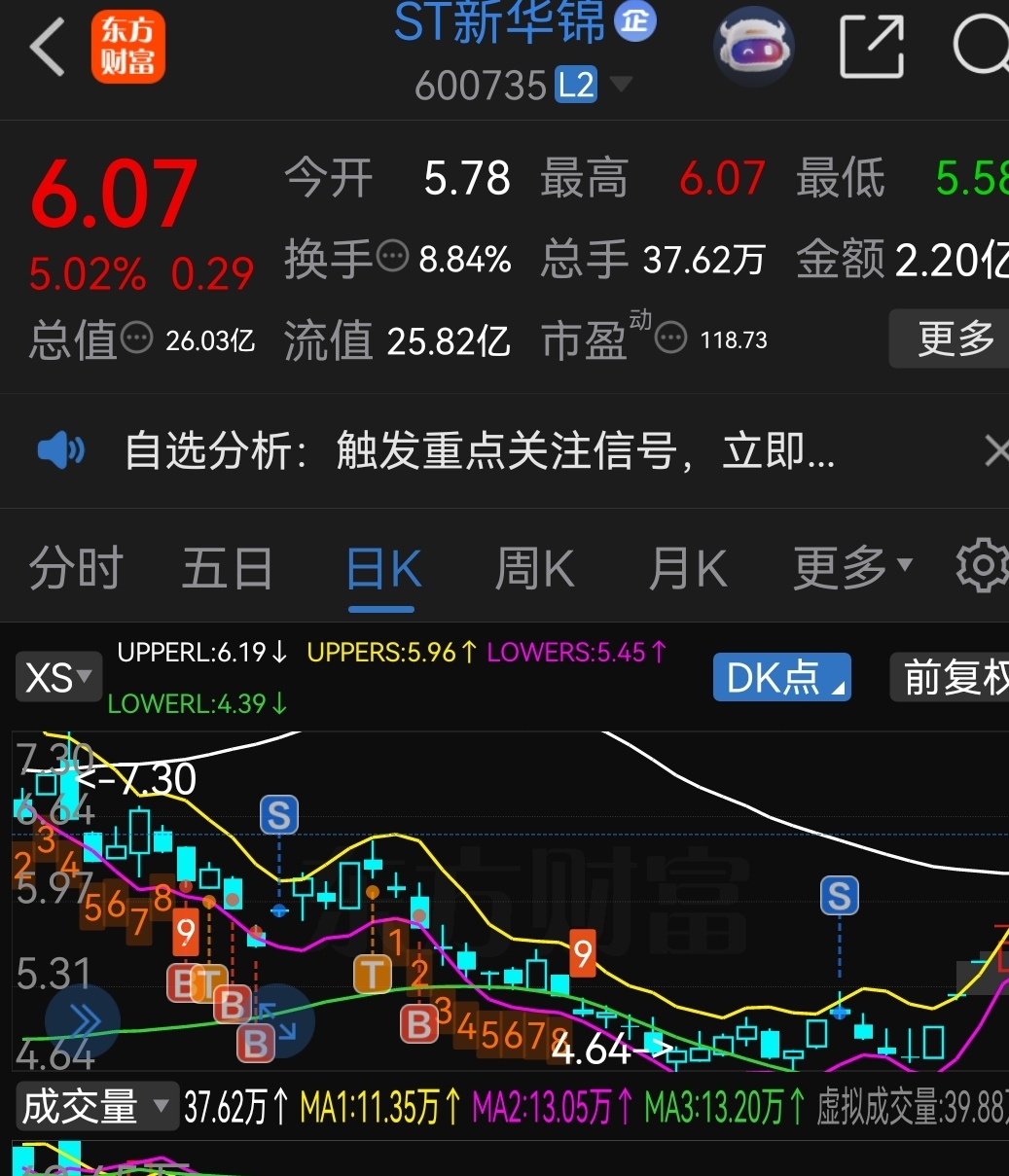 $ST新华锦(SH600735)$ 周末利空,星期一跌停试盘,9:25平开后一路走高涨停,星期二开盘微量封板,星期三炸一下板又封板,今天平开又反复洗,可能好多人都被洗下来了,主力太牛了,成功的吃了我的三分之二的筹码,看来这回接不回来了。