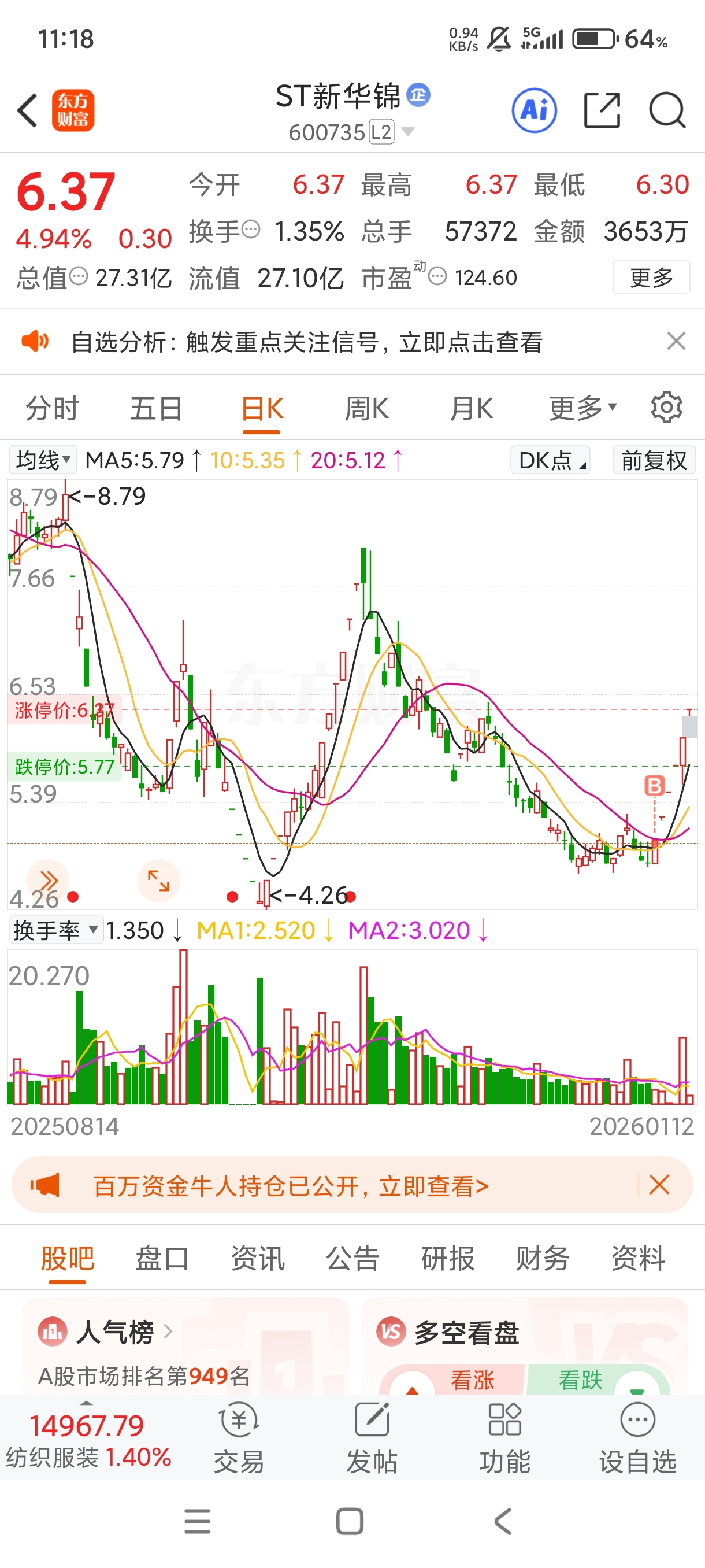 万幸还有一个新华锦,这一波行情,还有的赚,这次涨停会到8元吗?