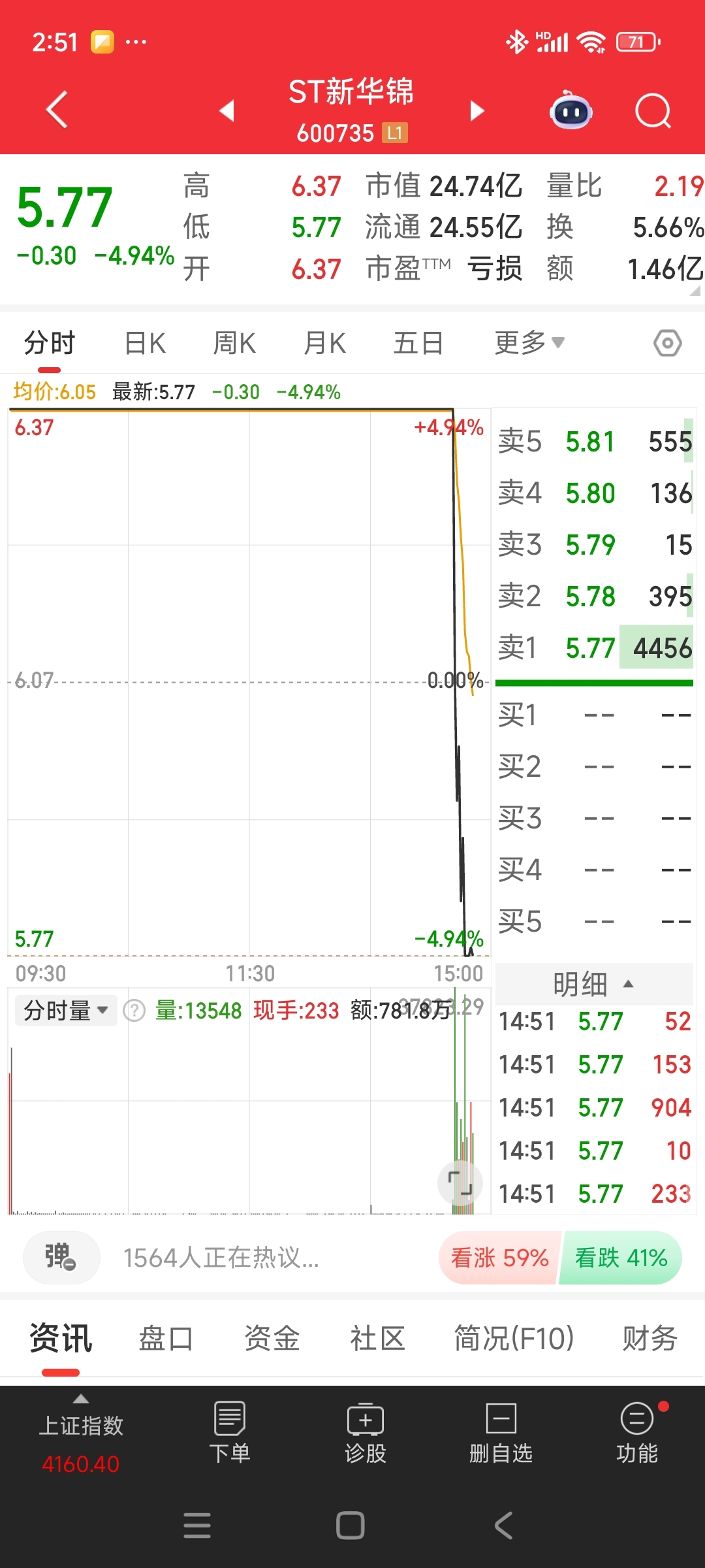 $ST新华锦(SH600735)$ 是用天地板来控异动吗?早上开盘我还在想,今天如果继续涨停,那又是严重异动,搞不好会被监控或者停牌的,尾盘偷袭天地板,nice