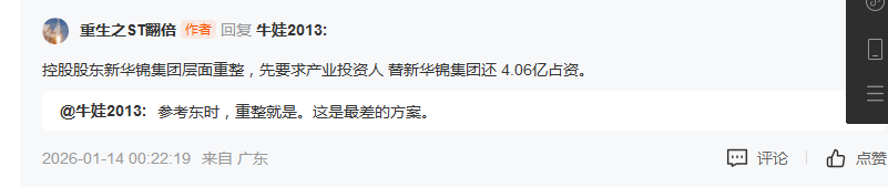 担心没重整完就退市的,请参考ST东时剧本,重整投资人随时可先替新华锦集团还占资
