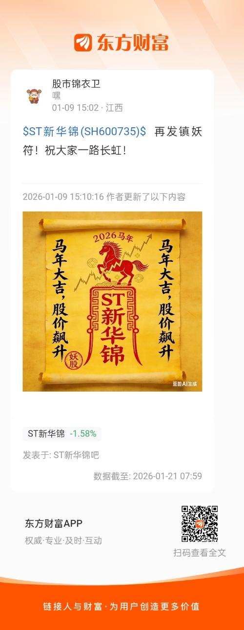 $ST新华锦(SH600735)$  再发镇妖符!祝大家一路长虹!