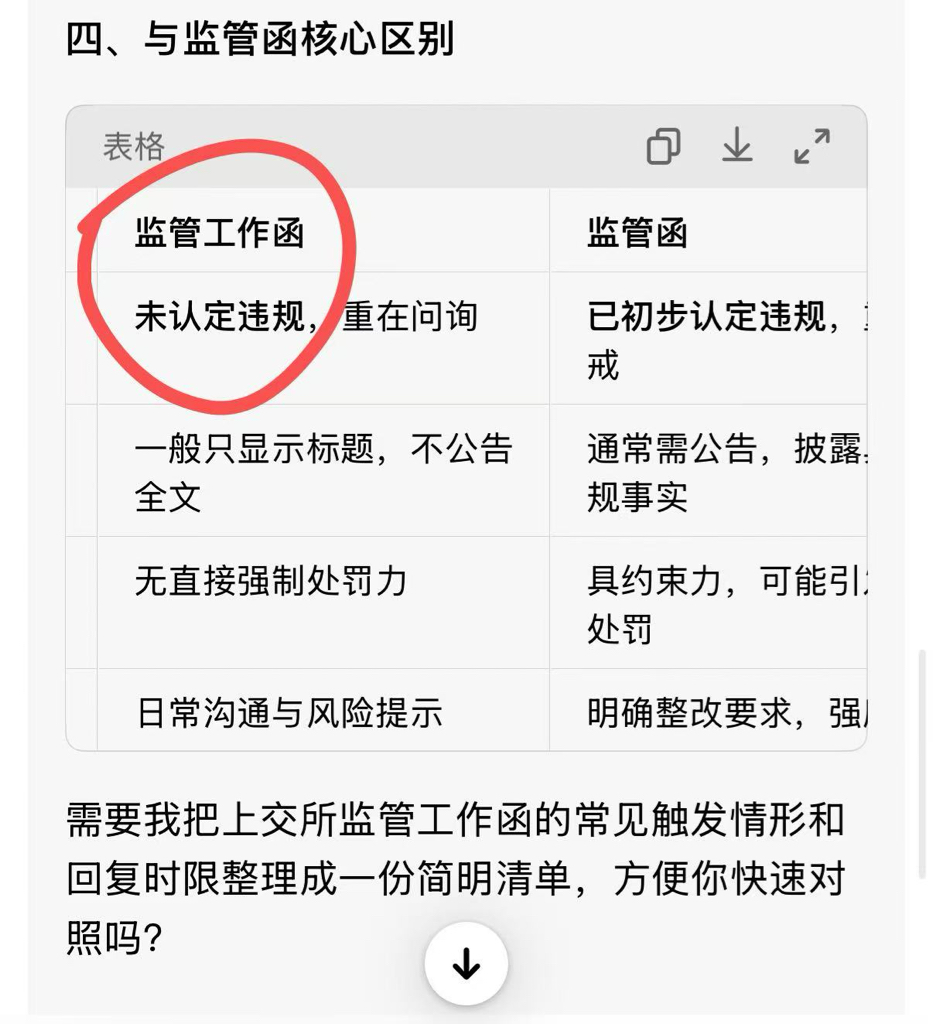 XX工作函和XX函是两个完全不同的东西,XX工作函是上交所和上市公司的日常沟通文件,并不是认定weigui,旨在加强沟通。