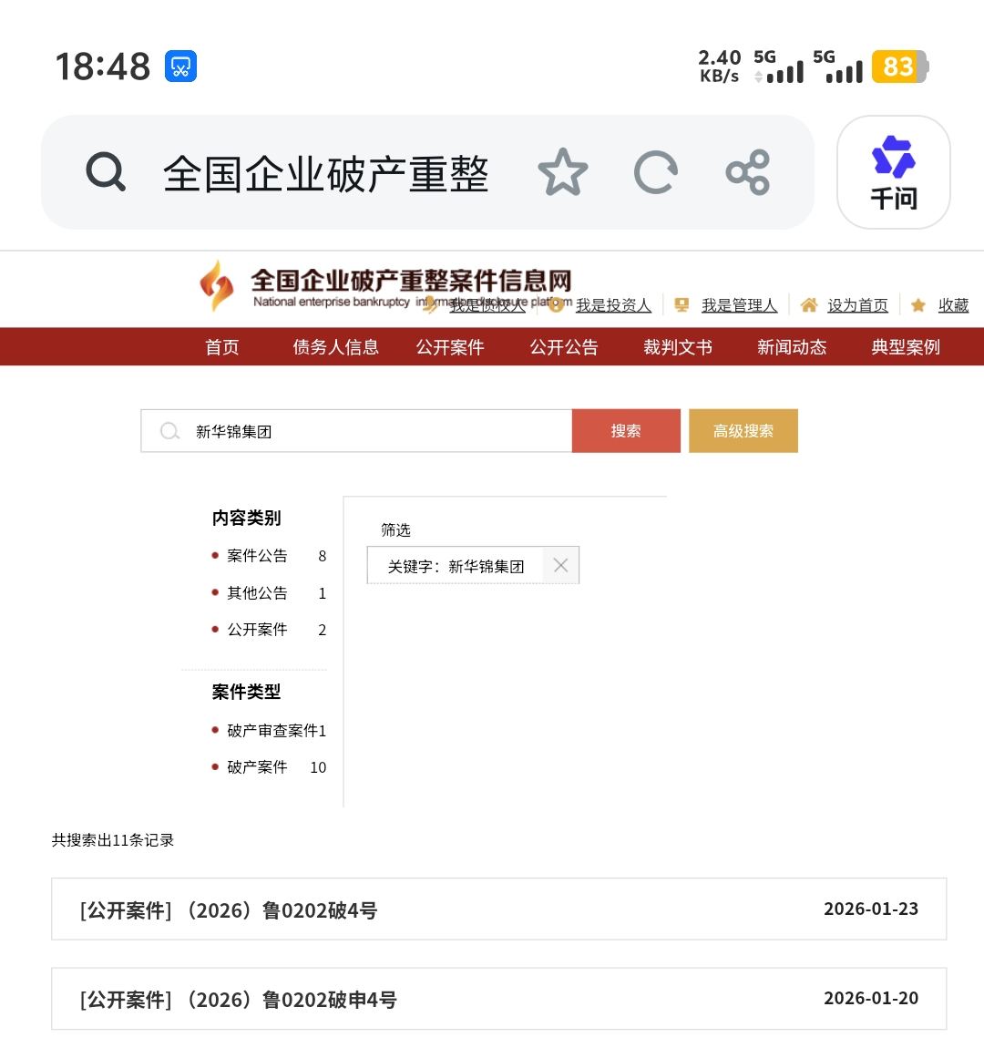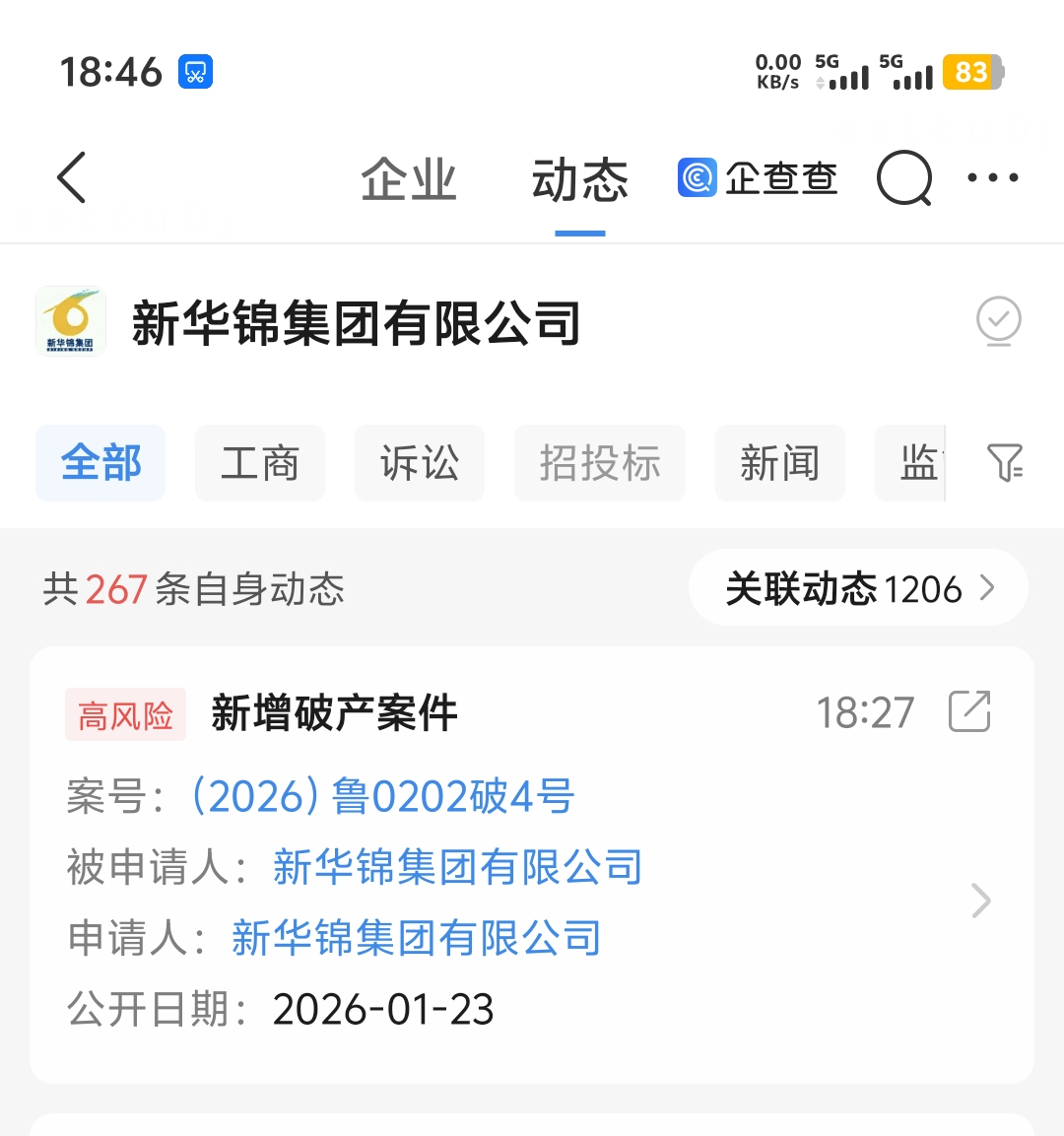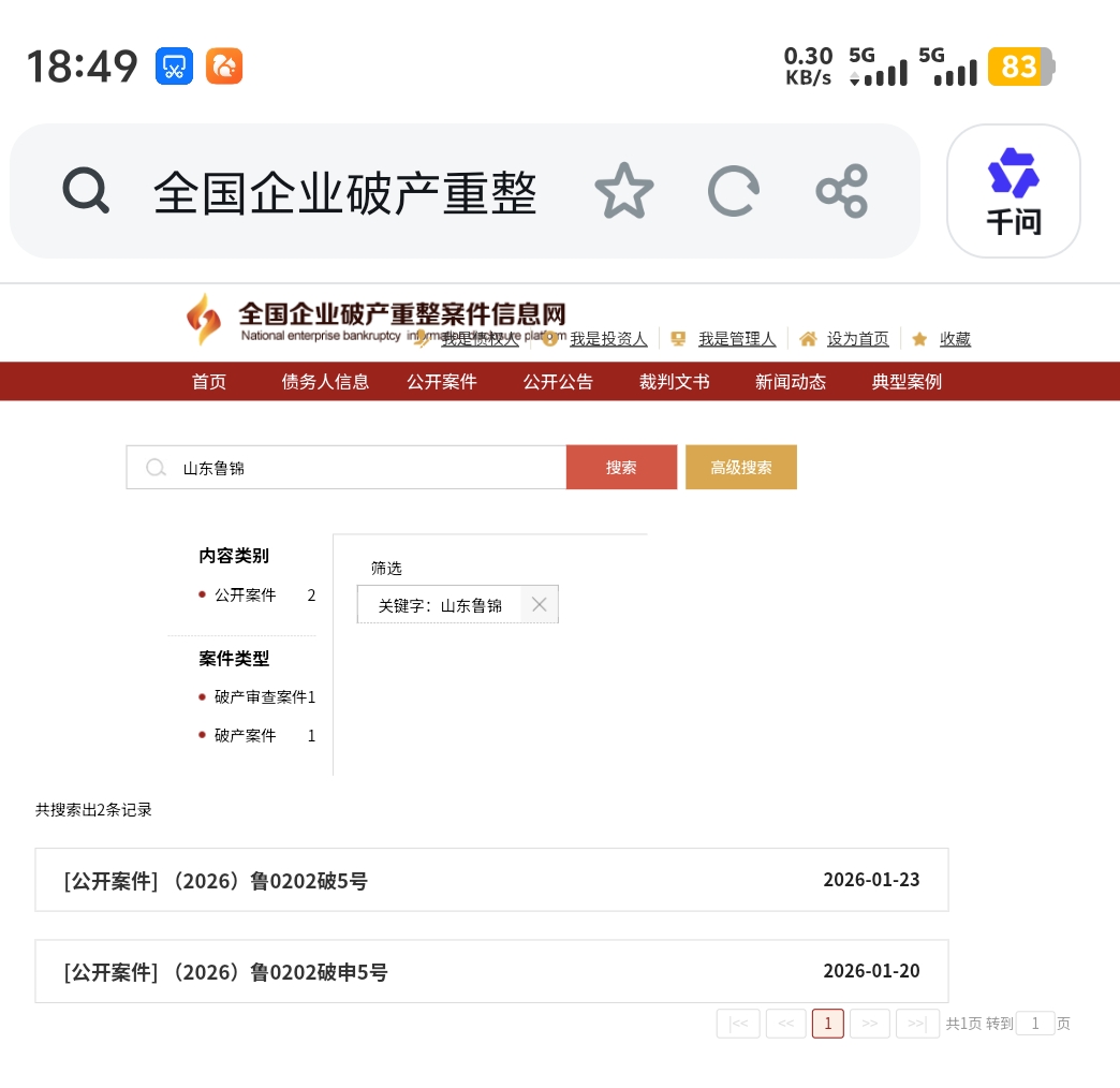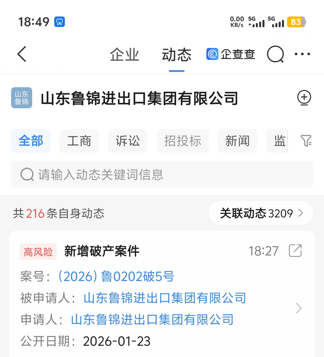 山东鲁锦进出口集团有限公司和新华锦集团有限公司,20号申请破产重整,23号已经受