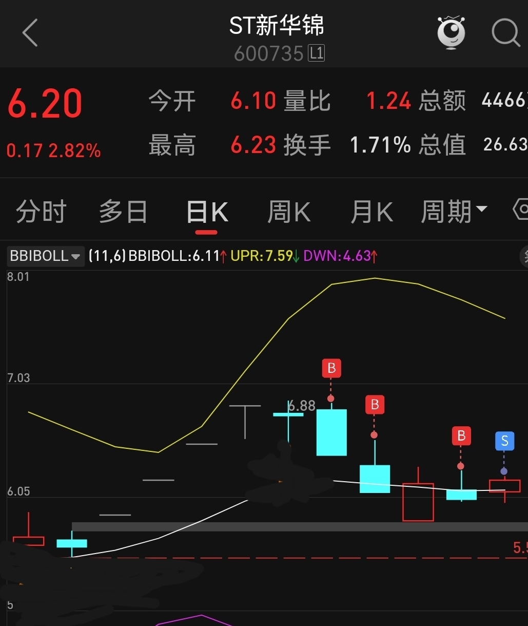 $ST新华锦(SH600735)$ 跌了就加仓,那天开盘5.87元,以为会5.79元跌停,准备跌停买,一直没有等到这个价。这几天的高点一天比一天低从31.28.今天23,卖了这几天买的。6元区域的新华锦就是黄金坑,主力在送钱。
