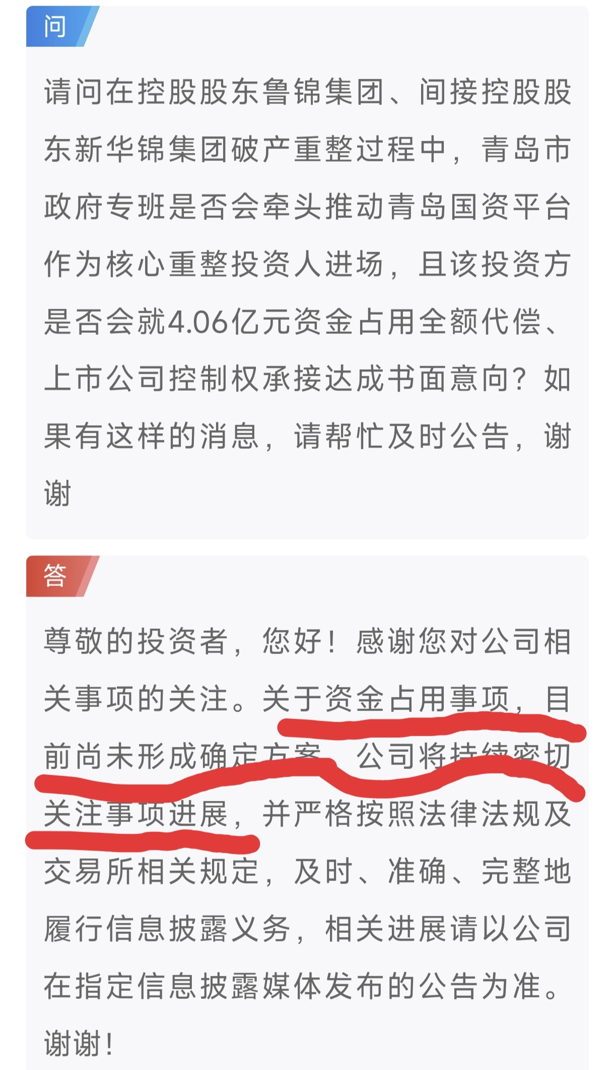 $ST新华锦(SH600735)$ 昨天的董秘回复意思是不是说有方案了,但是用哪个方案还不确定