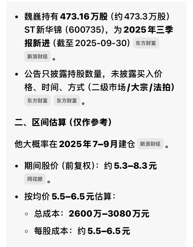 $ST新华锦(SH600735)$ 牛散魏巍目前的持股市值近100亿,三季报进新华锦473万多股,是不是就像普通人买个手机一样简单