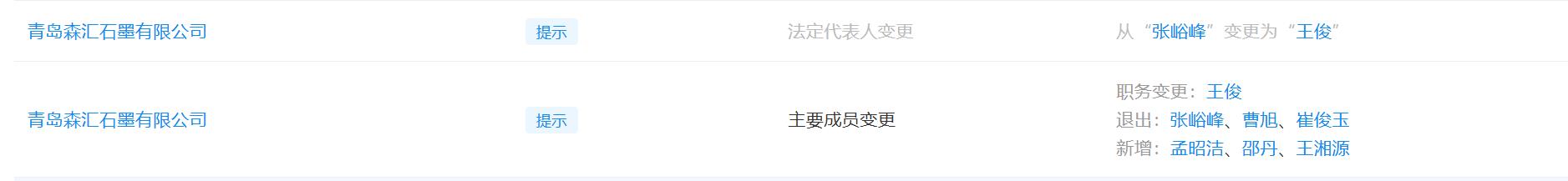 1、今天青岛森汇石墨有限公司已完成法定代表人及主要成员变更,公司治理结构全面优化,决策效率显著提升。