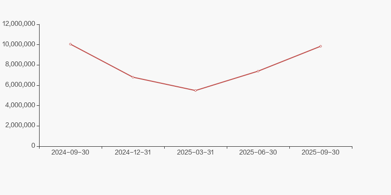截至2025年9月30日,公司最新总股本为11.51亿股,且均为流通股。户均持有流通股数量由上期的1.79万股上升至1.95万股,户均流通市值11.41万元。
