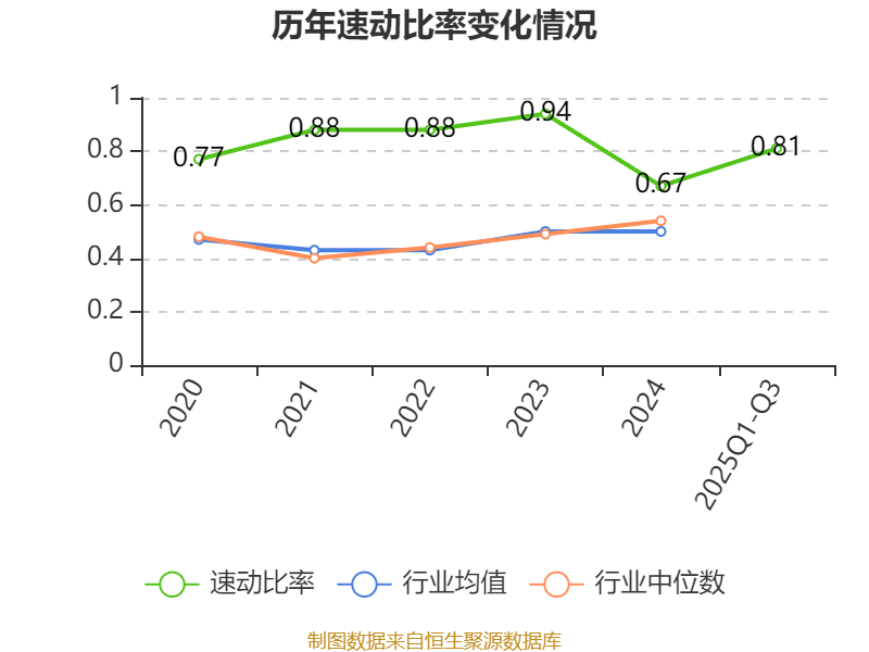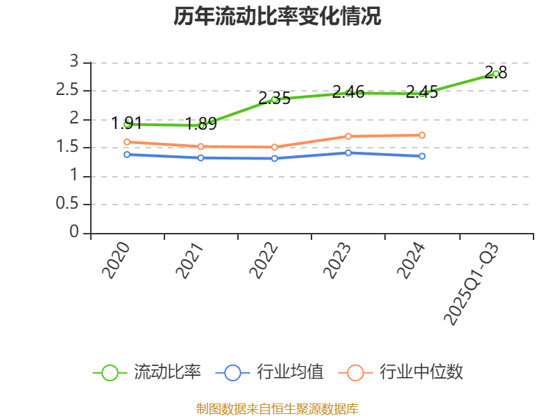 2025年前三季度,公司流动比率为2.8,速动比率为0.81。