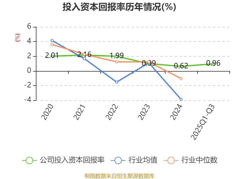 盈利能力方面, 2025年前三季度公司加权平均净资产收益率为2.74%,同比上升0.89个百分点。公司2025年前三季度投入资本回报率为0.96%,较上年同期下降0.08个百分点。