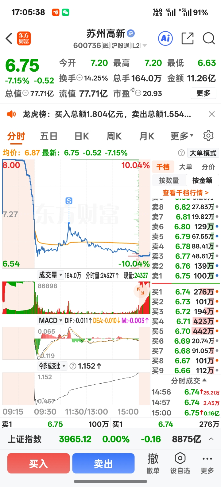 看见拉到7.15的时候直接几千万砸下来就知道情况不对赶紧跑了,而且下面量没有起来