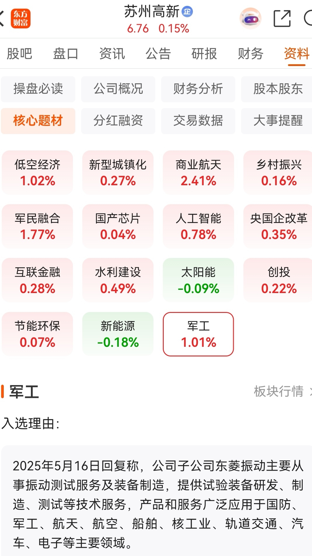 $苏州高新(SH600736)$ 既军工也商业航天!