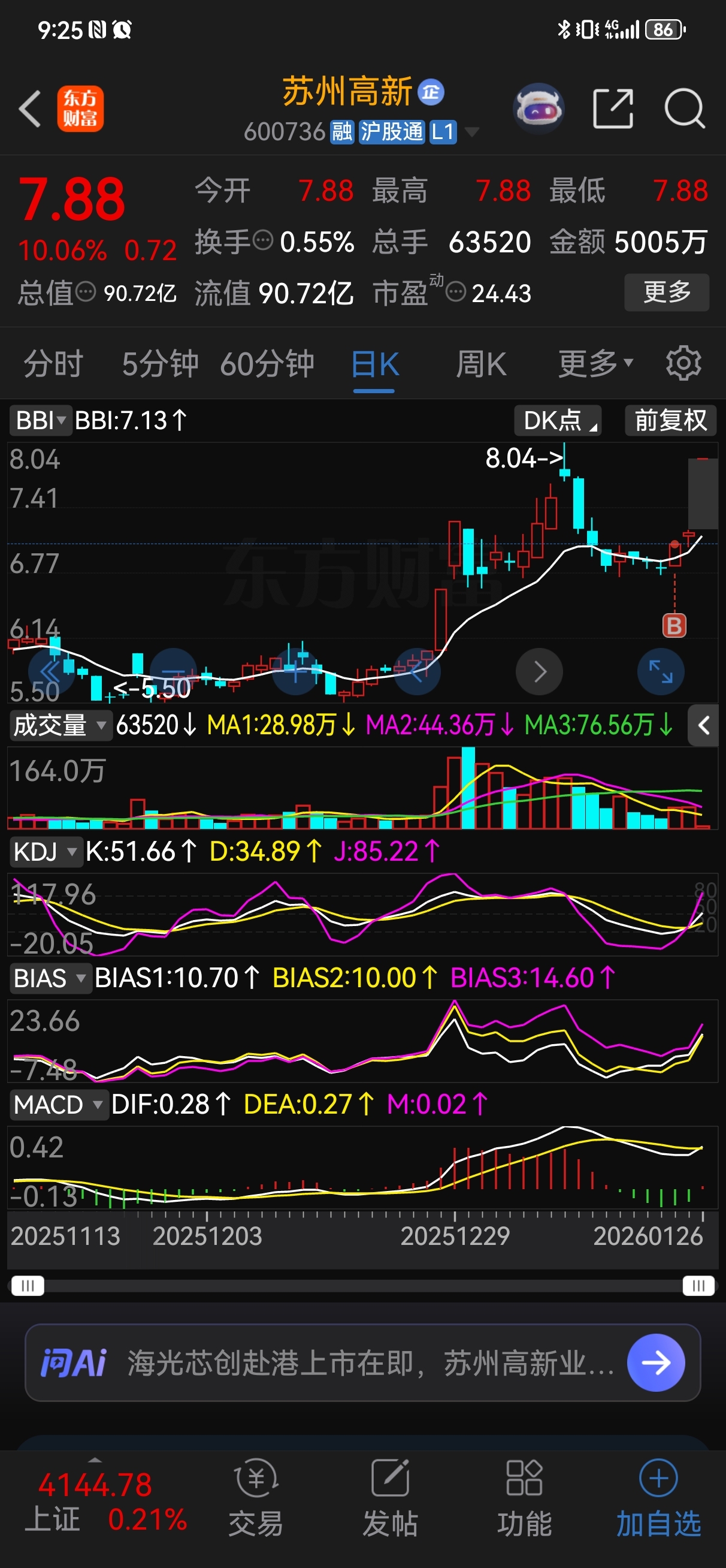 $苏州高新(SH600736)$ 得来全不费工夫……