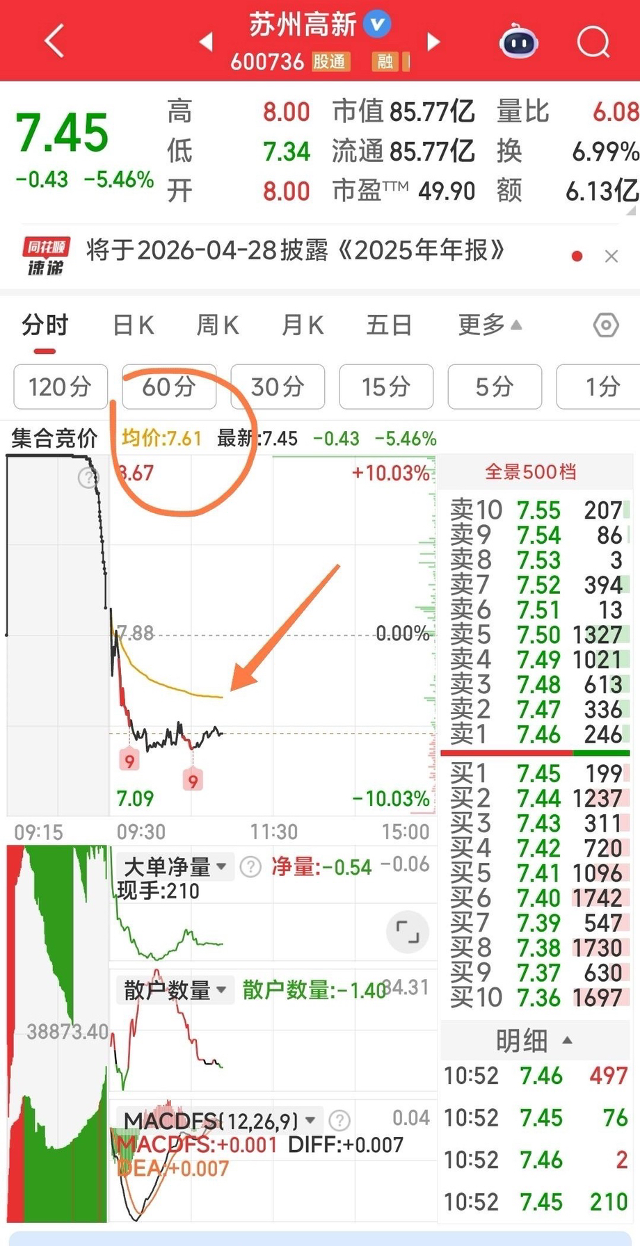 苏州高新,也关注站上分时均价7.61元后的再强势启动机会。