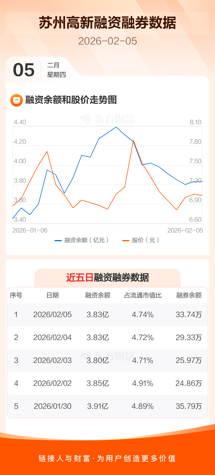 交易所最新数据显示,苏州高新于2026年2月5日获融资买入2074.47万元,融资偿还2026.48万元,当日融资净买入47.99万元。目前,该股融资余额3.83亿,占流通市值比例为4.74%。