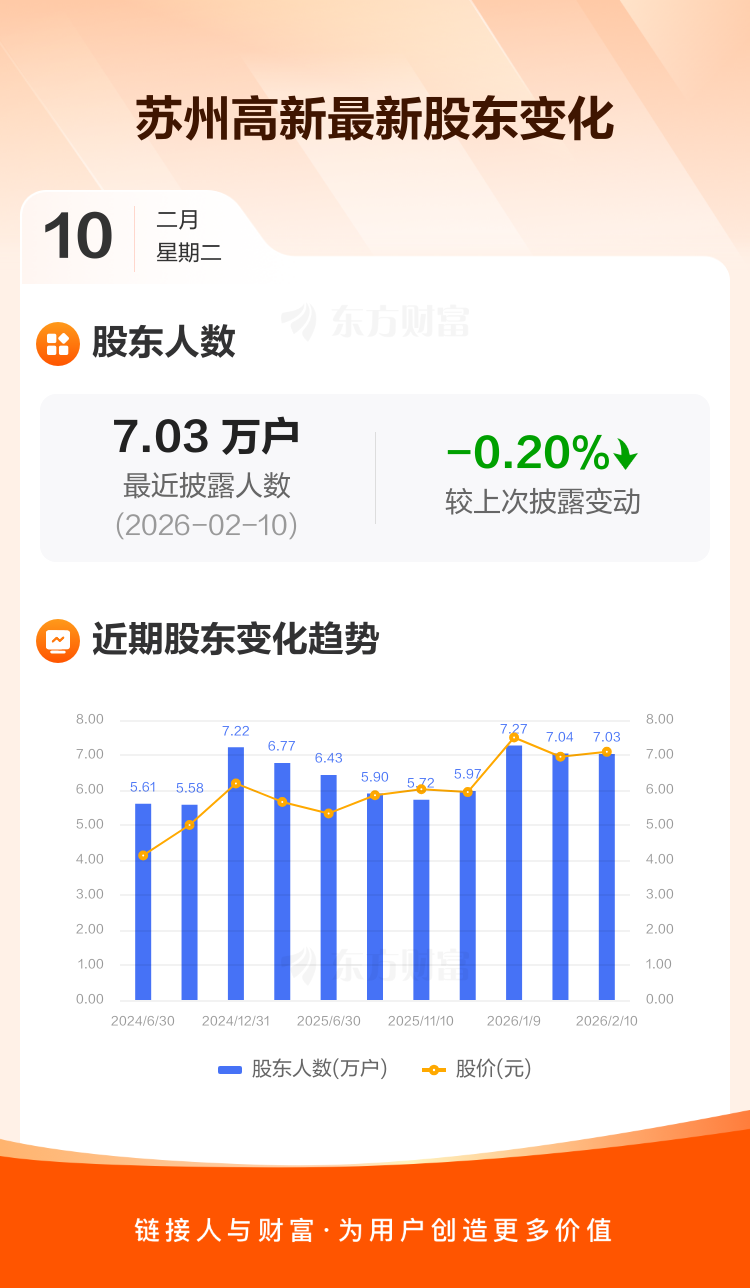 苏州高新:截至2月10日最新股东户数7.03万户,较上期减少0.20%