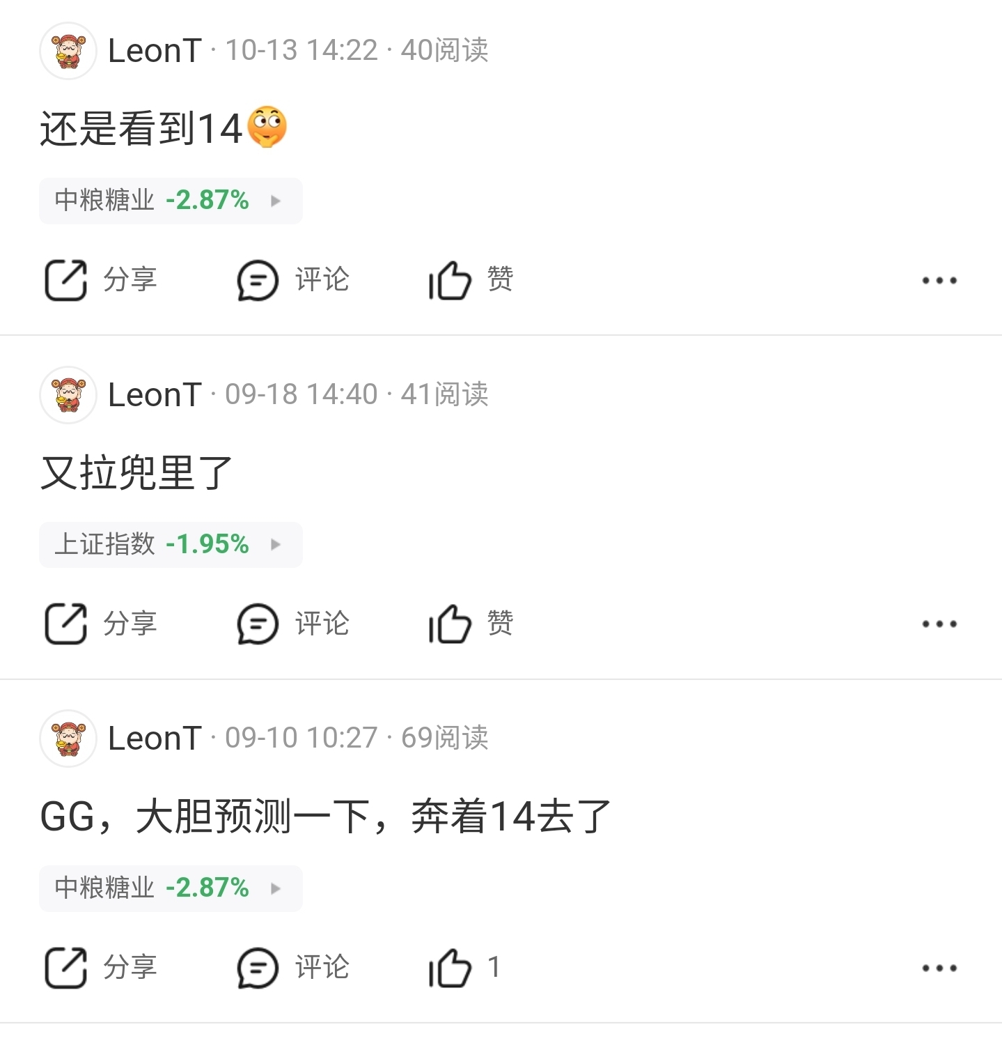 $中粮糖业(SH600737)$ 继续看到14,我接回来