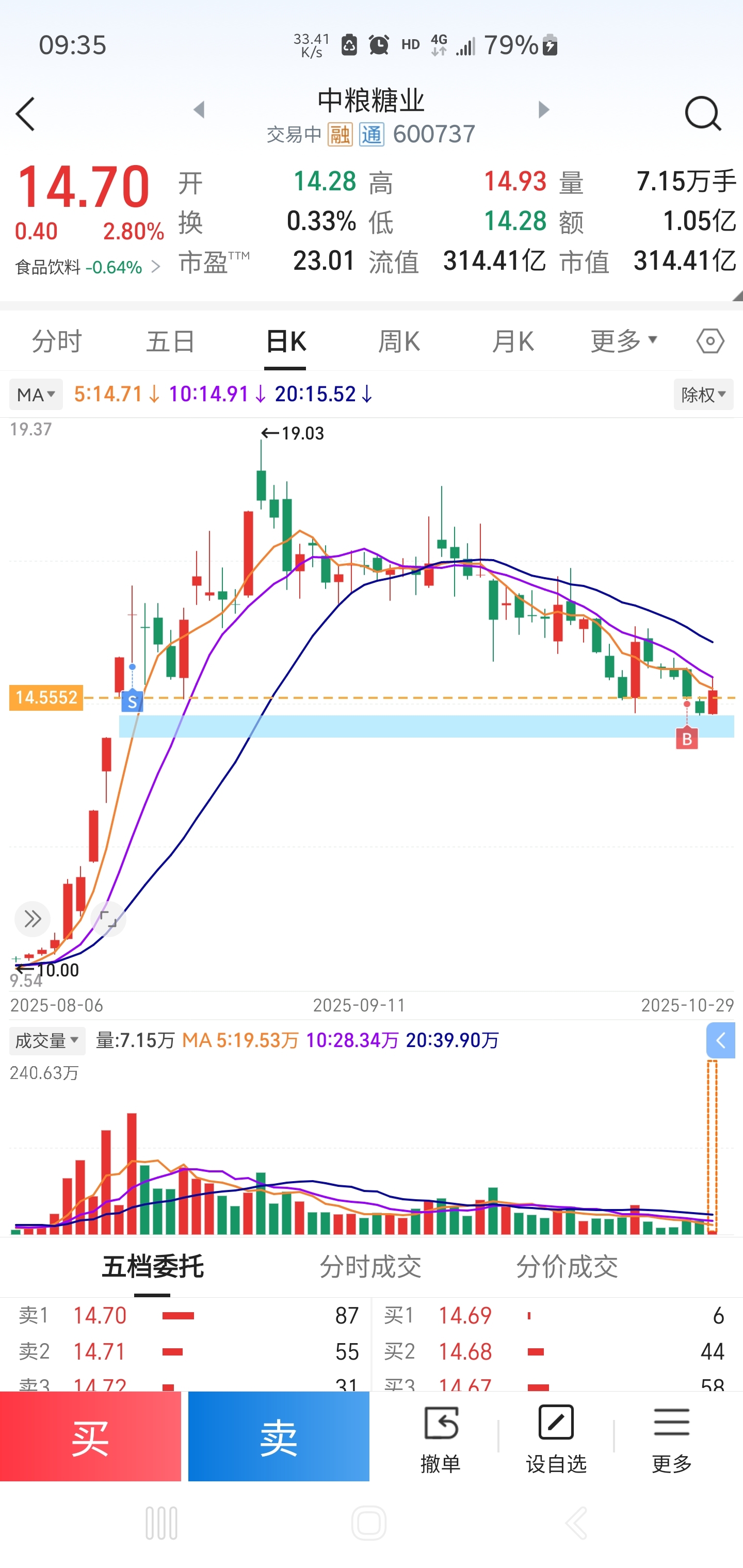 $中粮糖业(SH600737)$ 8月底清仓,之前说看到14就接回来,说到做到,但不是全接,各位可以做做参考
