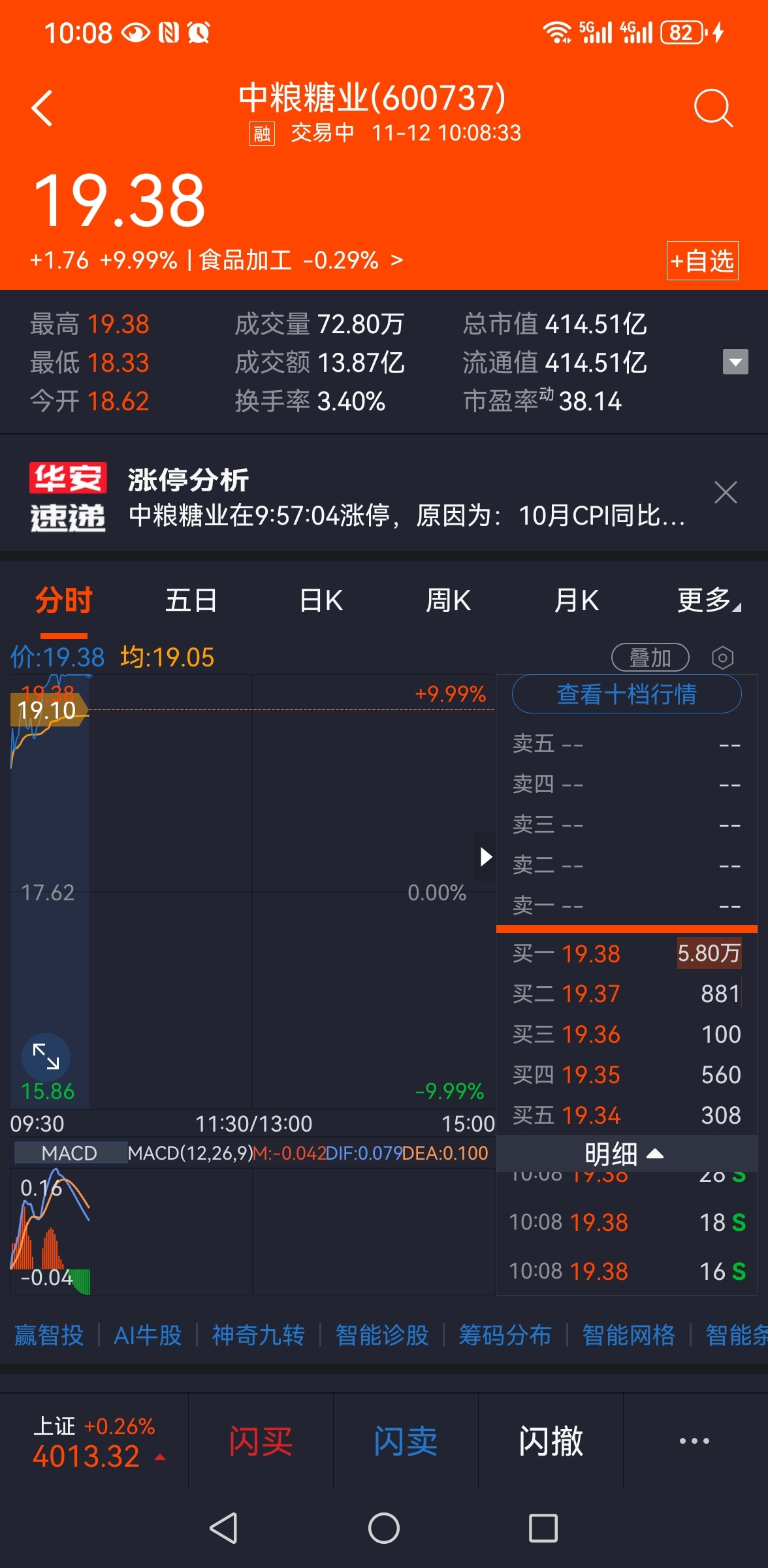 $中粮糖业(SH600737)$ 急急忙忙追了进来,只有一个多点收益