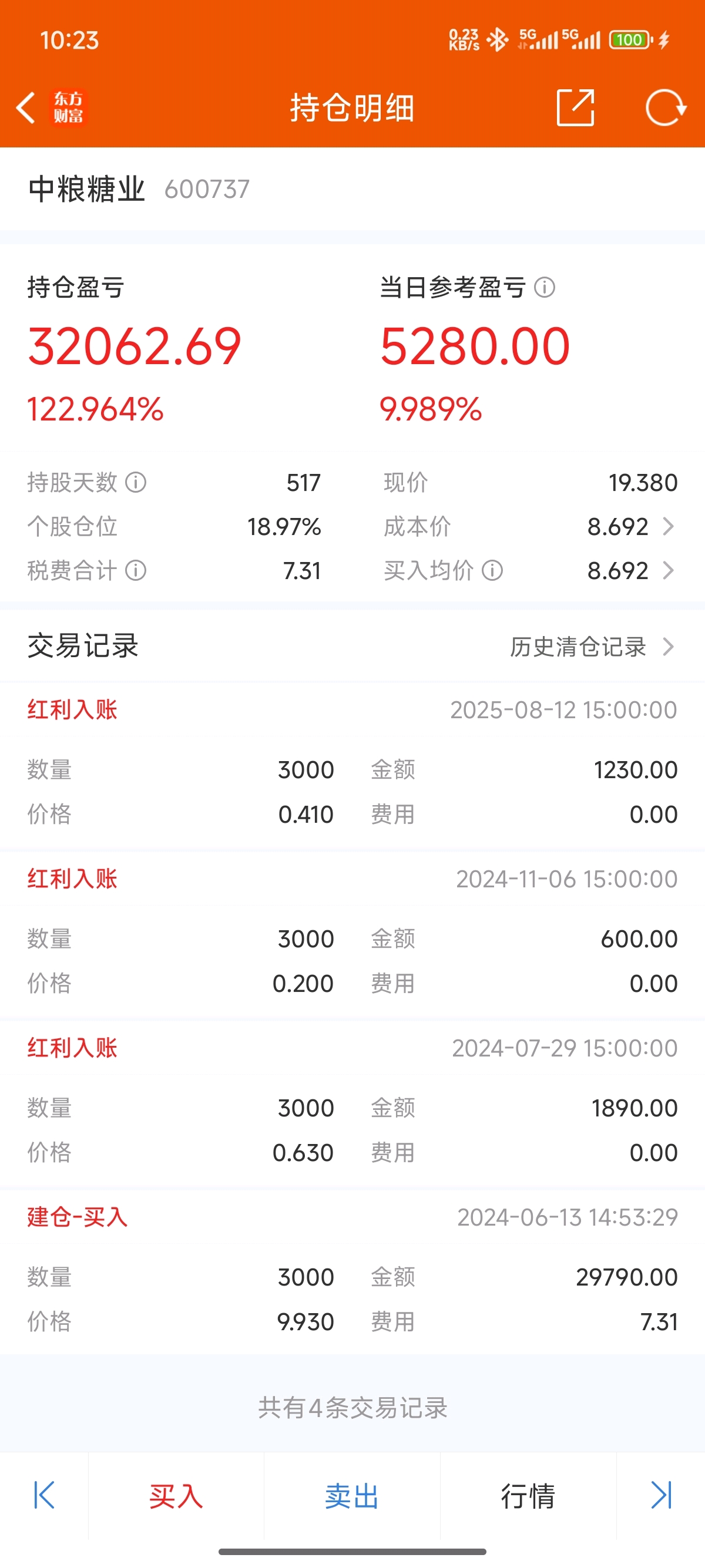 $中粮糖业(SH600737)$ 持有517天,多谢多谢