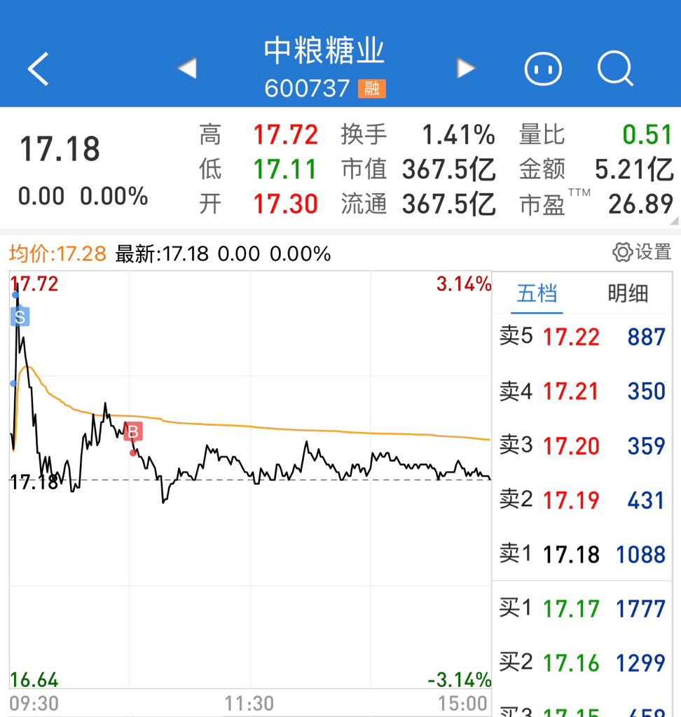 $中粮糖业(SH600737)$ 今天继续进1出2