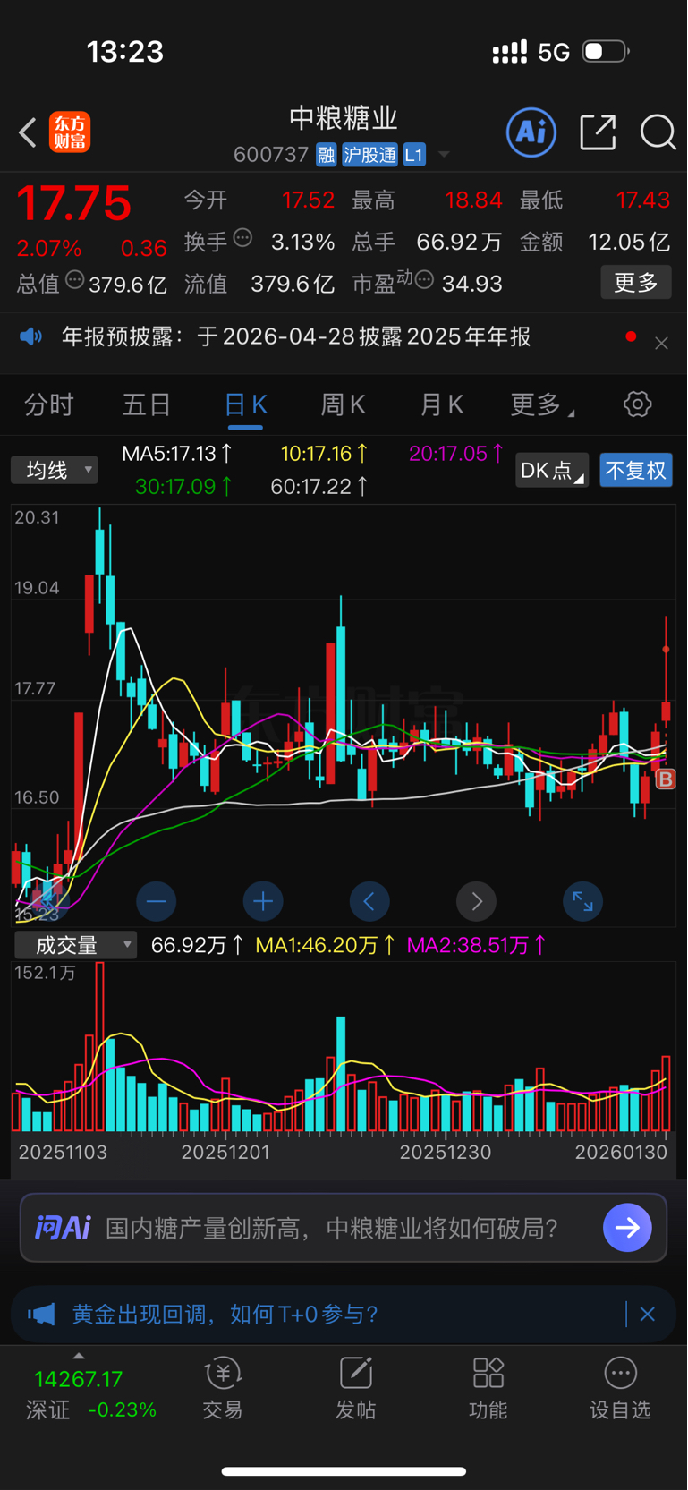 $中粮糖业(SH600737)$