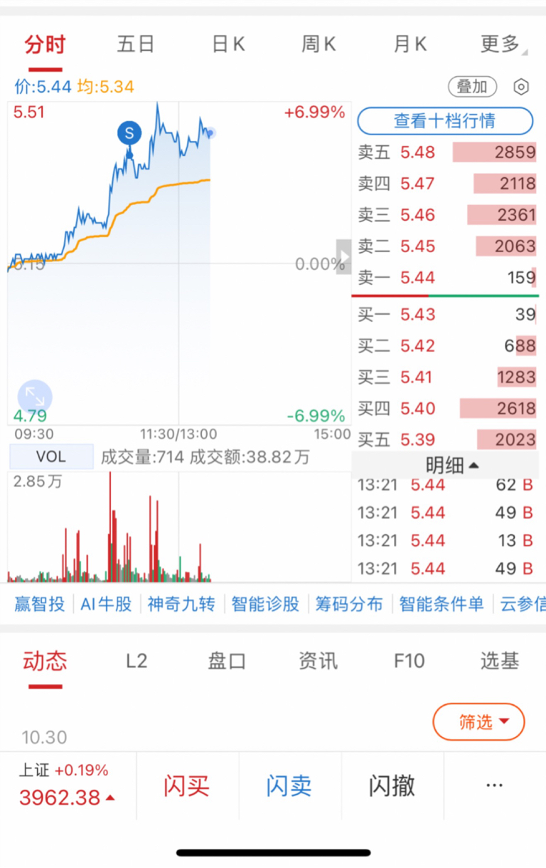 有想再买回去的冲动,早上5.43卖了半仓