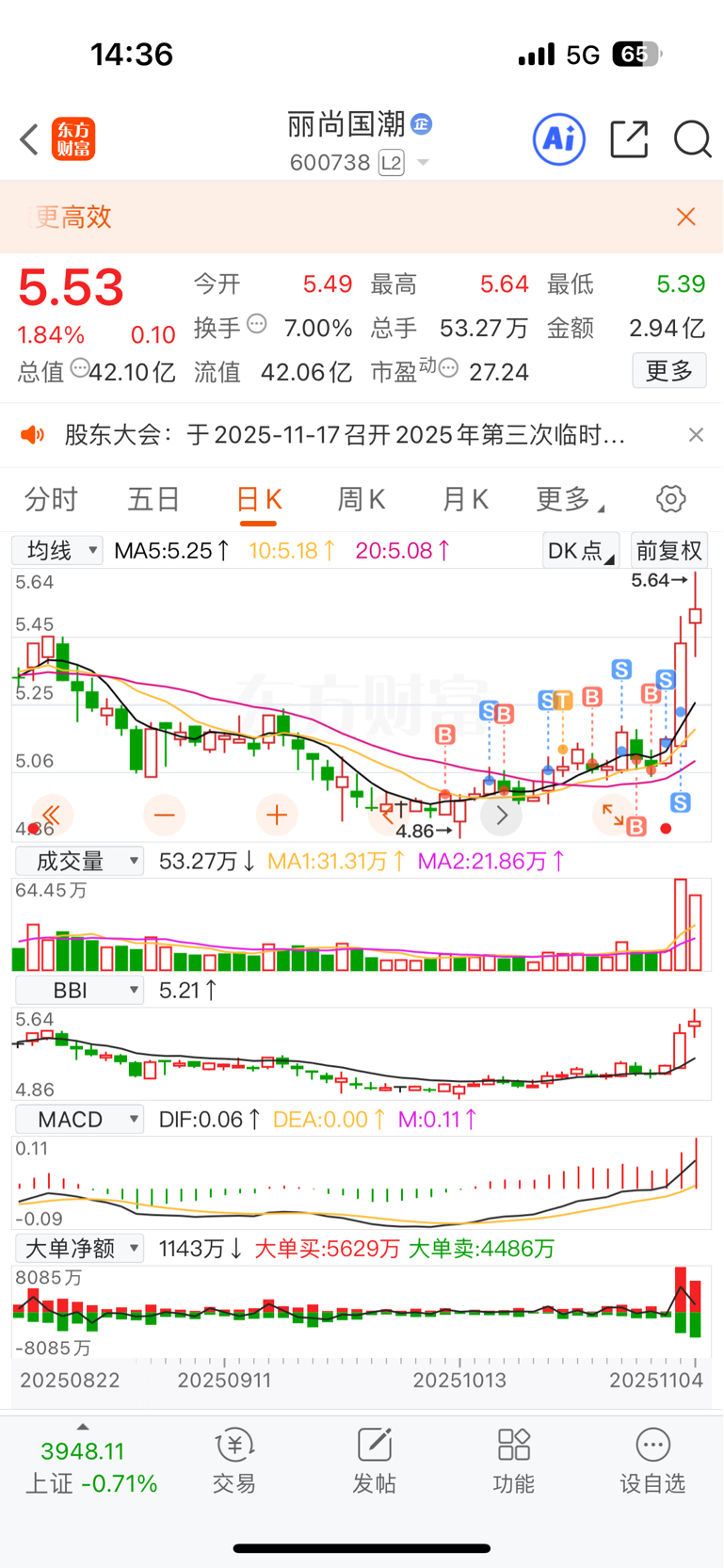$丽尚国潮(SH600738)$ 买点没问题。卖点还得研究。