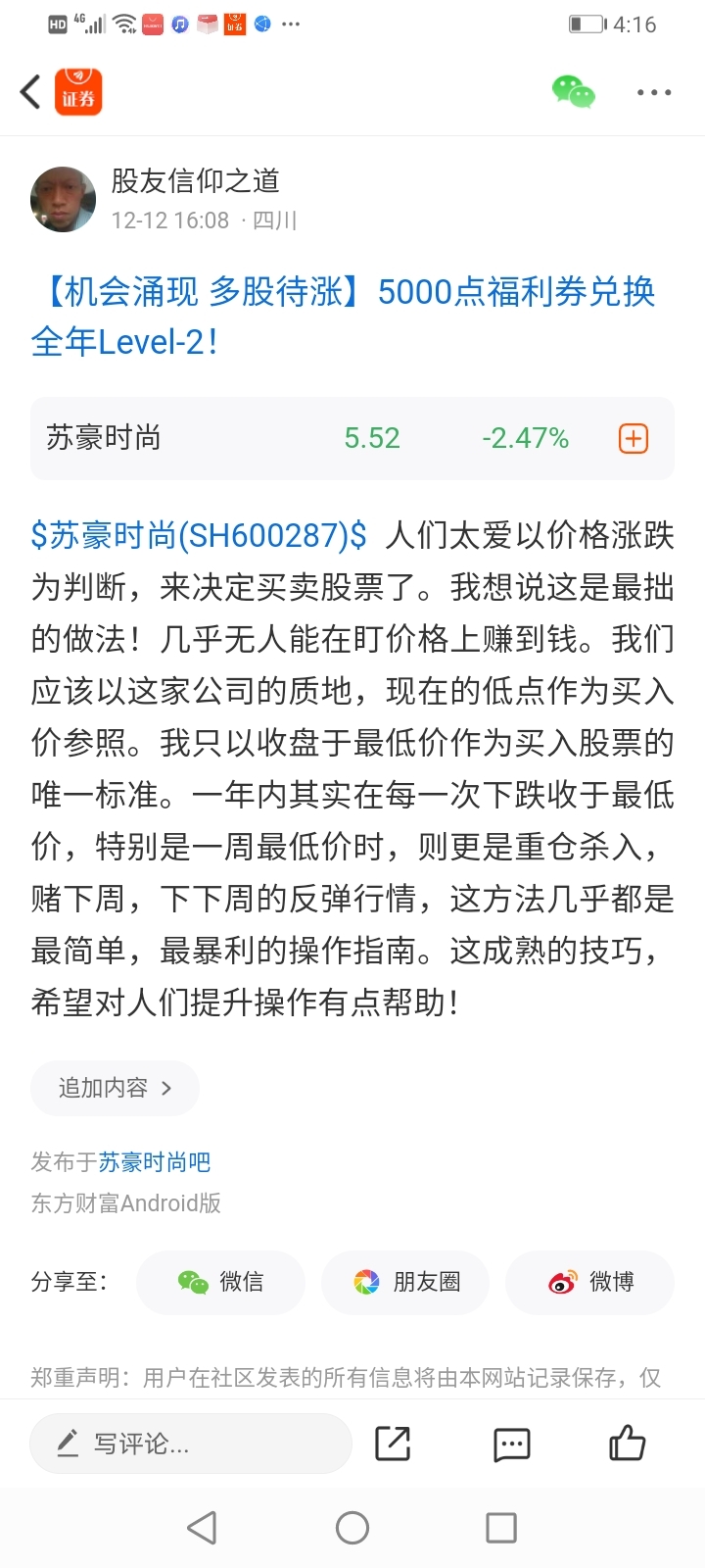 温馨提示: 1.根据《证券法》规定,禁止编造、传播虚假信息或者误导性信息,扰乱证券市场;2.用户在本社区发表的所有资料、言论等仅代表个人观点,与本网站立场无关,不对您构成任何投资建议。用户应基于自己的独立判断,自行决定证券投资并承担相应风险。《东方财富社区管理规定》