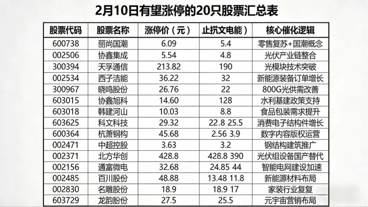 今日涨停潜力标的(见下图)不作为投资推荐!见下图,共20只标的个股。点赞+关注,