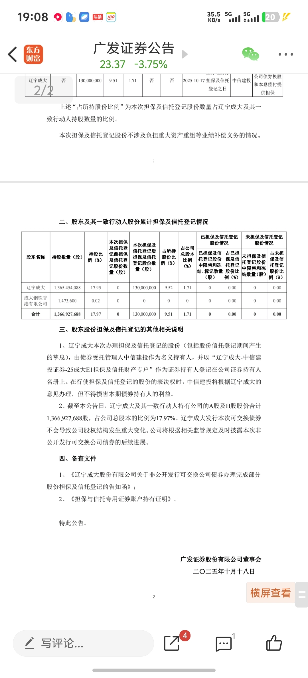 $辽宁成大(SH600739)$ 辽宁成大终于开始减持广发证券股票。