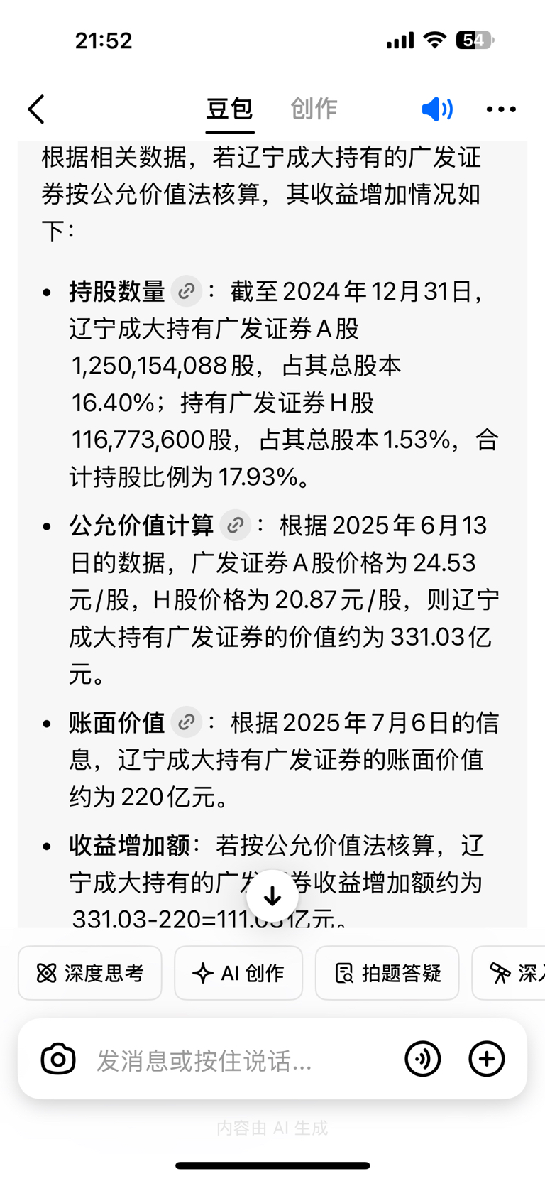 $辽宁成大(SH600739)$ 辽宁成大公告减持广发证券百分之3,如果减持后辽宁成大对广发证券按公允价值变动法核算,能增加百亿利润,建议辽宁成大修改对广发证券的核算方式为公允价值变动法
