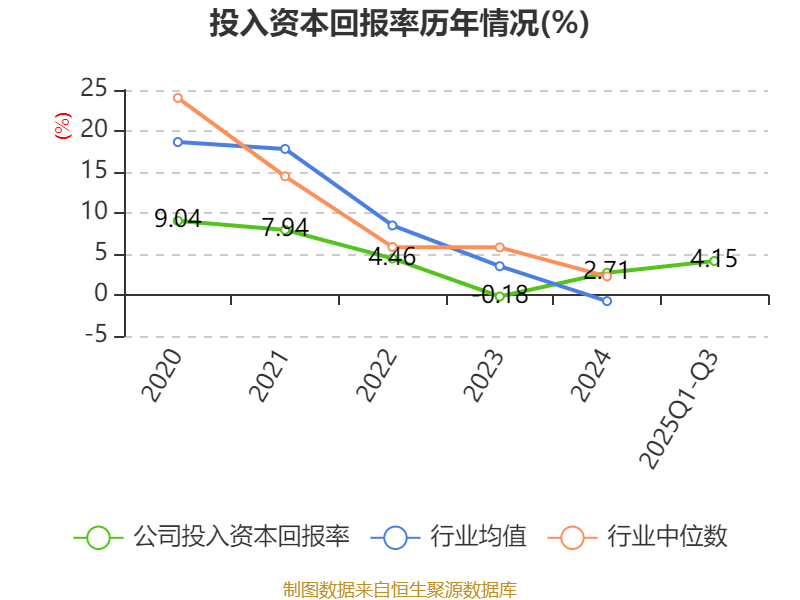 盈利能力方面, 2025年前三季度公司加权平均净资产收益率为4.58%,同比上升2.14个百分点。公司2025年前三季度投入资本回报率为4.15%,较上年同期上升1.7个百分点。