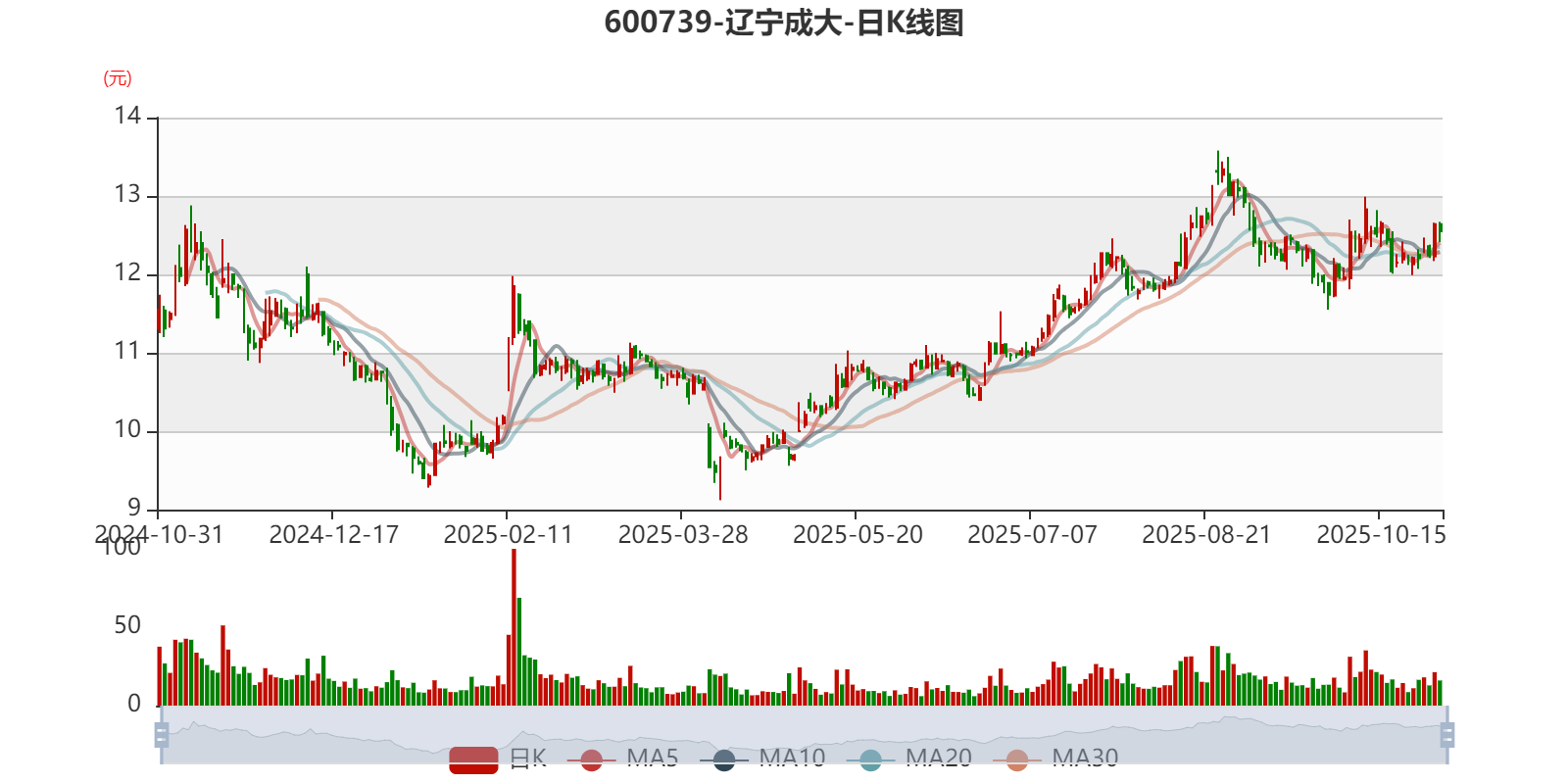 以10月30日收盘价计算,辽宁成大目前市盈率(TTM)约为22.25倍,市净率(LF)约0.65倍,市销率(TTM)约1.73倍。