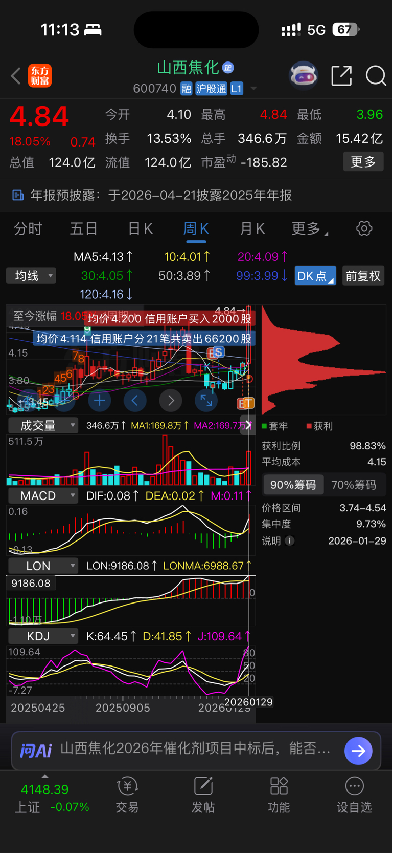 $山西焦化(SH600740)$ 亏大了4.11卖了