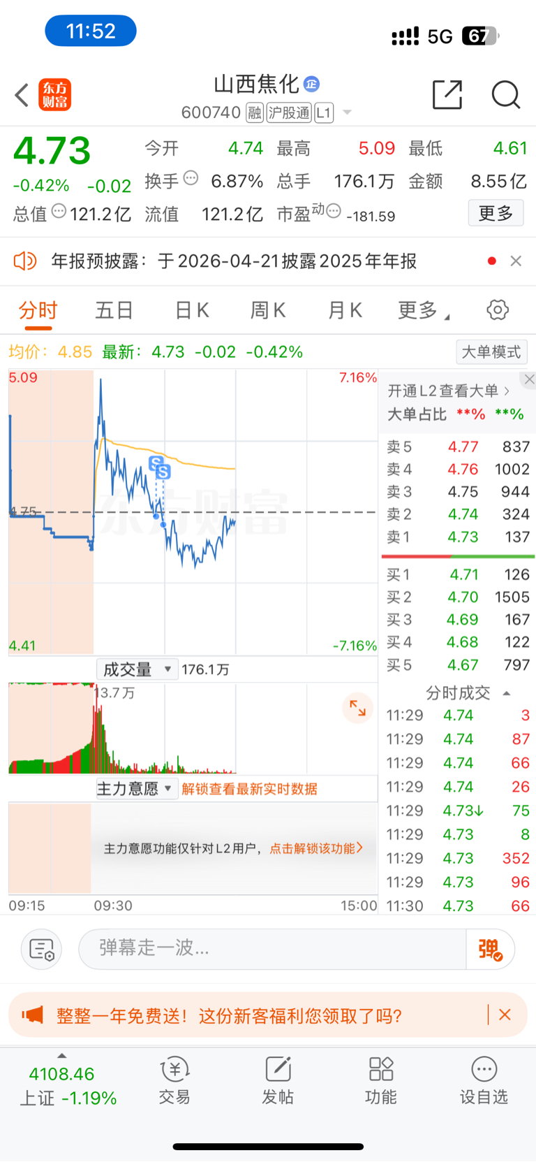 $山西焦化(SH600740)$ 真的1分钟都不能格局。拜拜,不见七个点