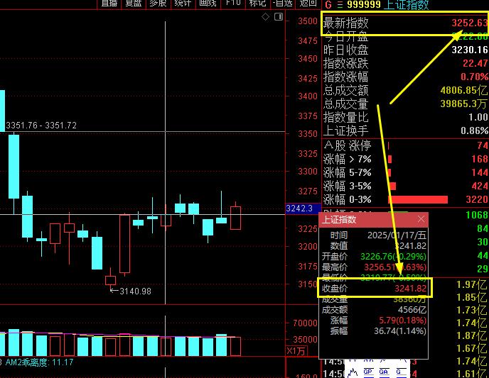 上周五收盘是3241点,这周收盘是3252点,是涨了还是跌了?