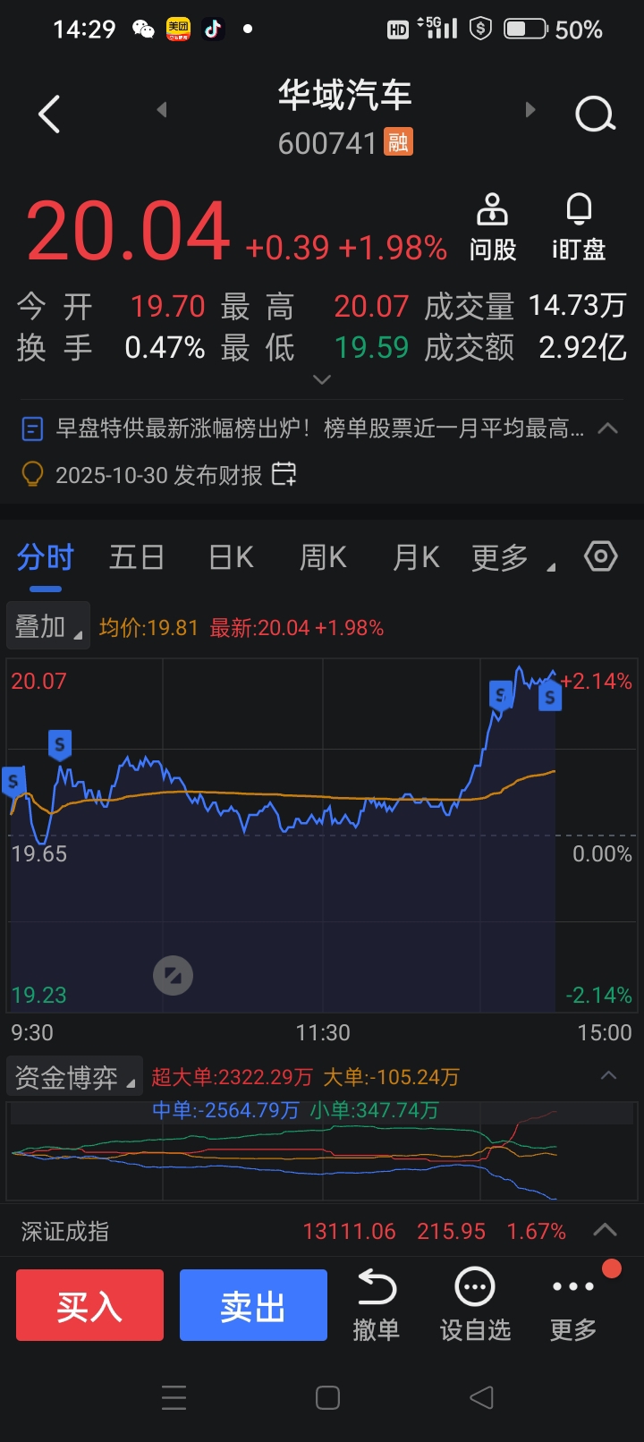 $华域汽车(SH600741)$ 这样狂涨,黑的我一哆嗦卖几笔压压惊