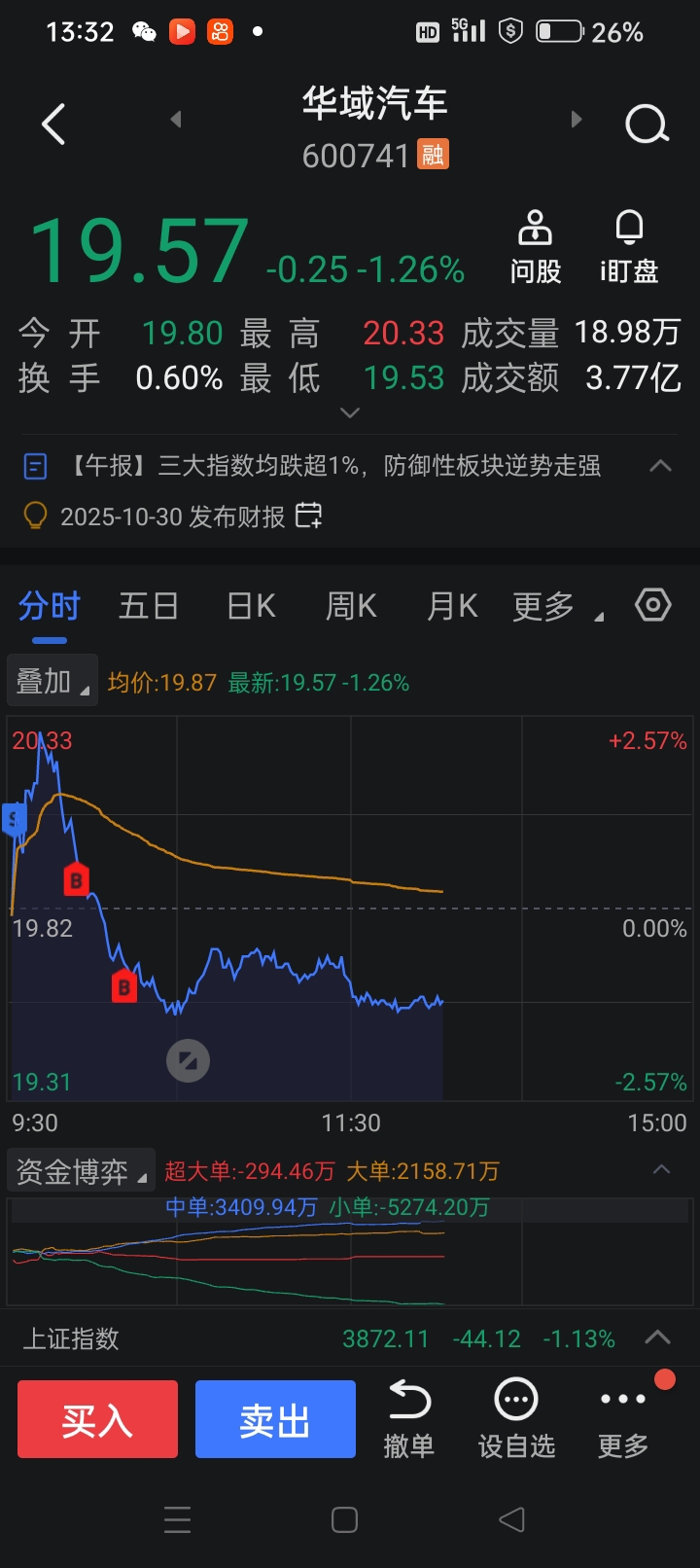 $华域汽车(SH600741)$ 我的梭哈价,19.52元