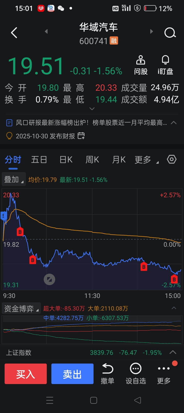 $华域汽车(SH600741)$ 血雨腥风,保险起见补仓间距动作适当拉大,每下跌五毛加仓一次,买到海枯石烂地老天荒