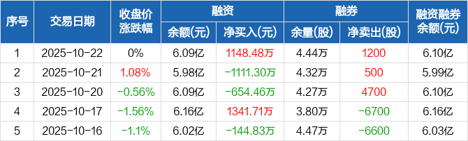 华域汽车:融资净买入1148.48万元,融资余额6.09亿元(10-22)