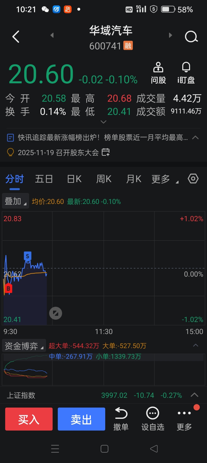 $华域汽车(SH600741)$ 历时25分钟完成正T,我在主力面前就是镰刀?