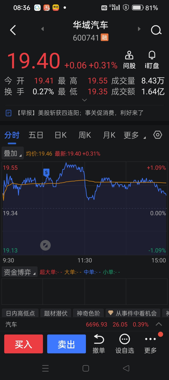 $华域汽车(SH600741)$ 这个票适合守长线,更适合做短线,这句话虽然矛盾却并不矛盾,咋天跑了一笔,还有一笔被困,卖出价19.6元
