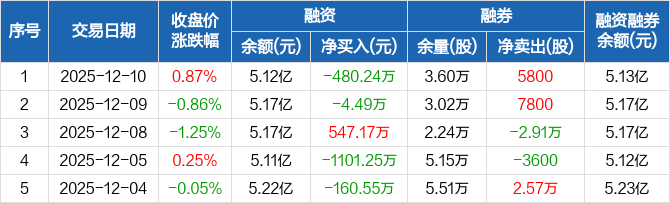 华域汽车:融资净偿还480.24万元,融资余额5.12亿元(12-10)