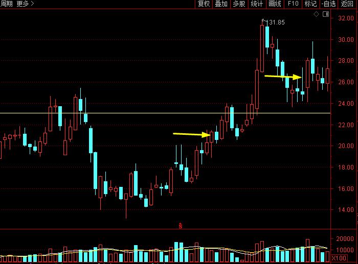 华域汽车日K,28块之后(除权价26)看到绿峰我就卖出,做了几波小短差。