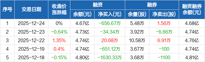 华域汽车:融资净偿还656.67万元,融资余额4.67亿元(12-24)
