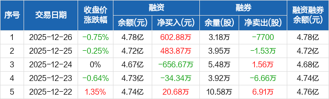 华域汽车:融资净买入602.88万元,融资余额4.78亿元(12-26)