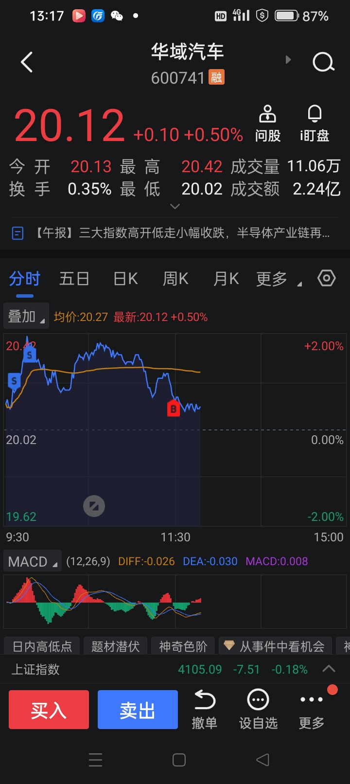 $华域汽车(SH600741)$ 倒T,涨跌随意不强求